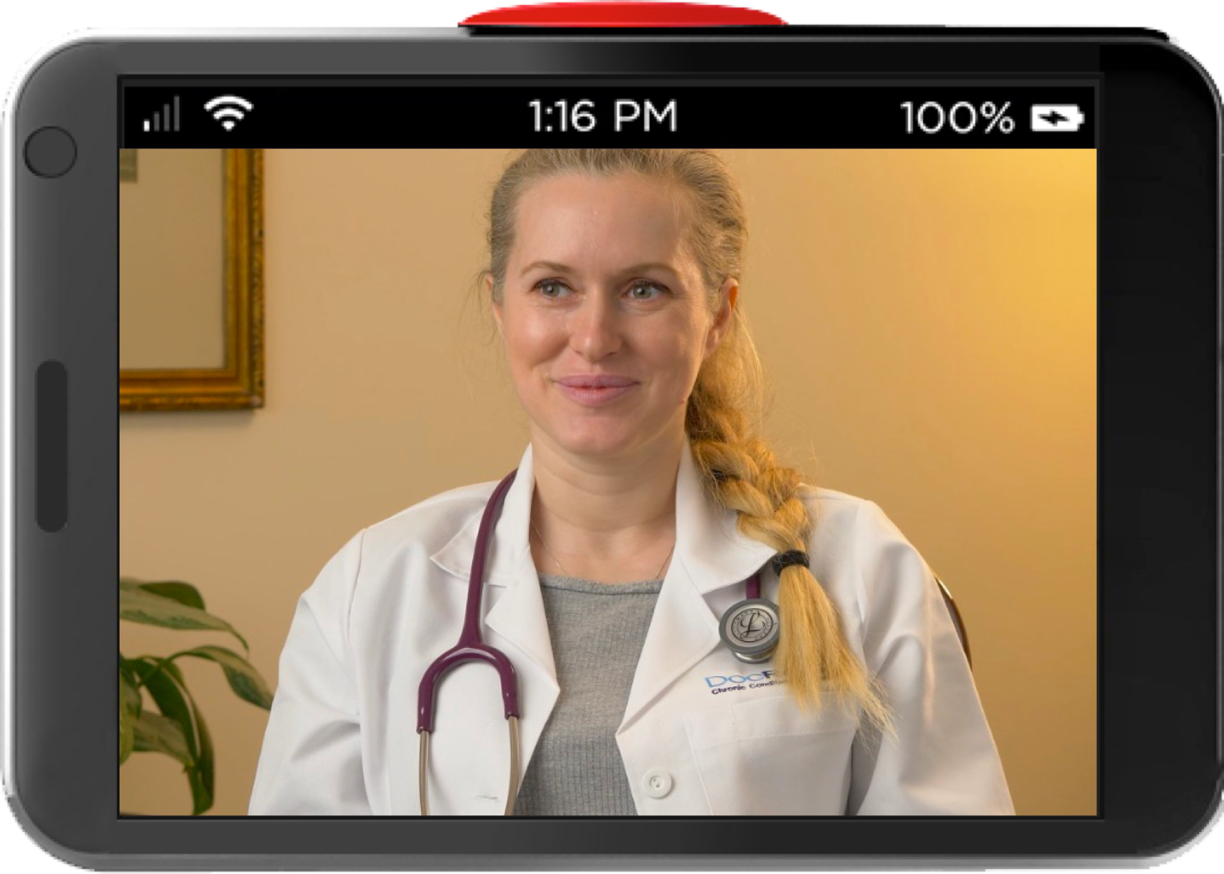 As a DocRoad patient, you will receive a free PocketDR device to monitor your vitals, chat with specialists, schedule appointments, meet with your care team, and more. PocketDR takes the hassle out of virtual healthcare with an easy-to-use design and advanced health monitoring tools, including: